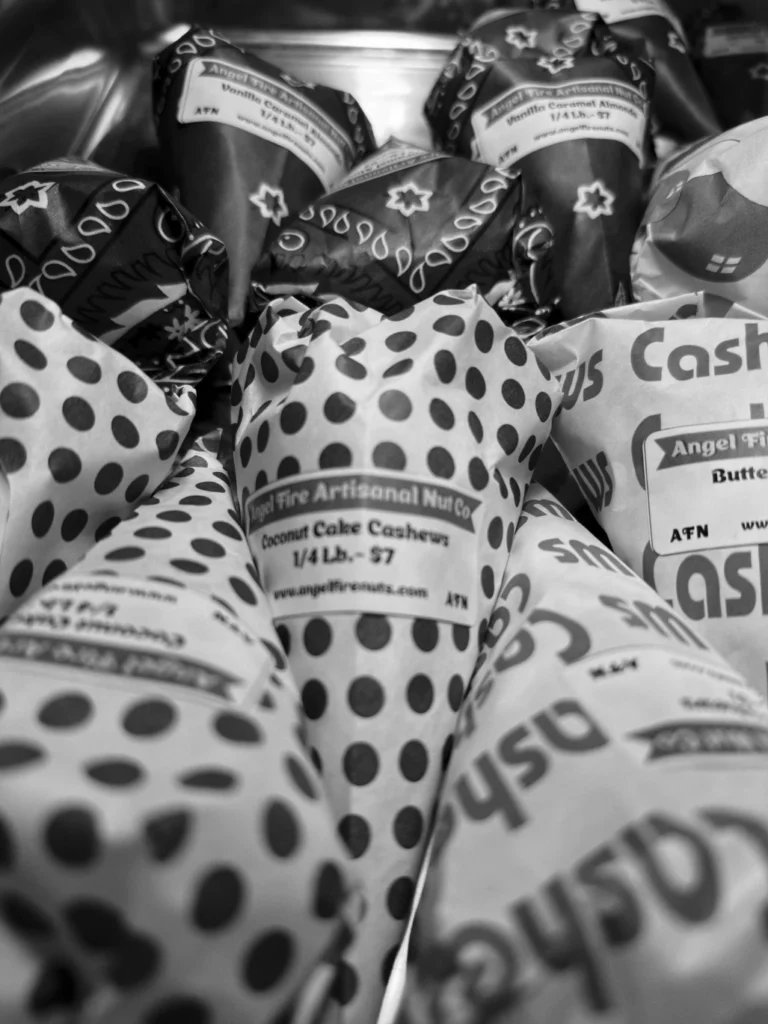 Tucked in the back of Angel’s Antique Mall,Angel Fire Artisanal Nut Company roastssmall batches of glazed nuts all day long.